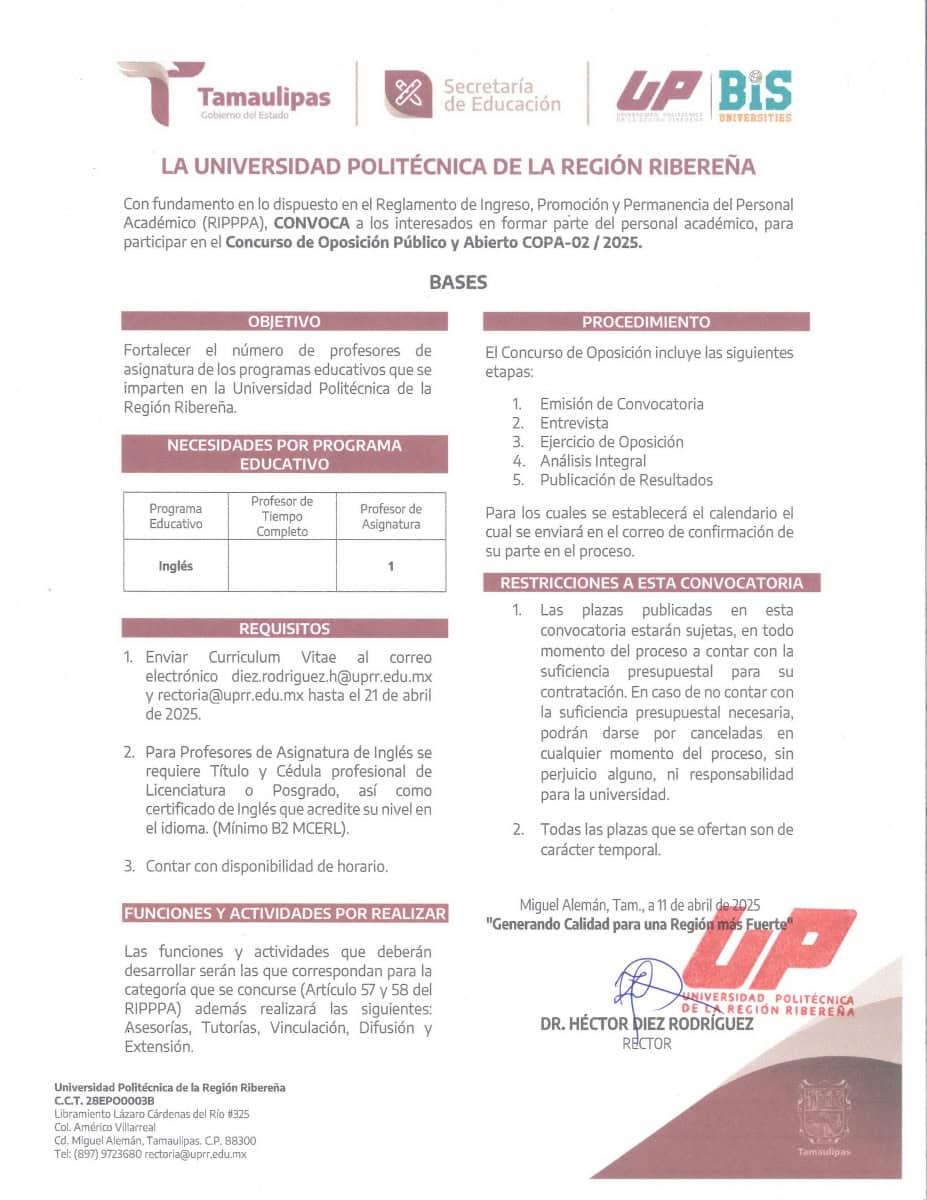 Convocatoria Docente Mayo – Agosto 2025