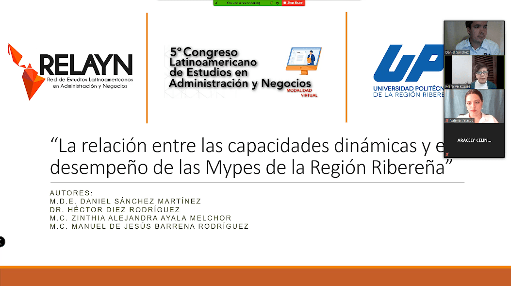 Los días 26 y 27 de Noviembre, Daniel Sánchez Martínez, Héctor Diez Rodríguez, Zinthia Alejandra Ayala Melchor y Manuel de Jesús Barrena Rodríguez, Profesores de Tiempo Completo de nuestra Universidad, participaron en el 5° Congreso Latinoamericano de Estudios en Administración y Negocios RELAYN 2020, en la modalidad virtual, organizado por la Universidad La Salle, Oaxaca, en conjunto con REDESLA (Redes de Estudios Latinoamericanos).