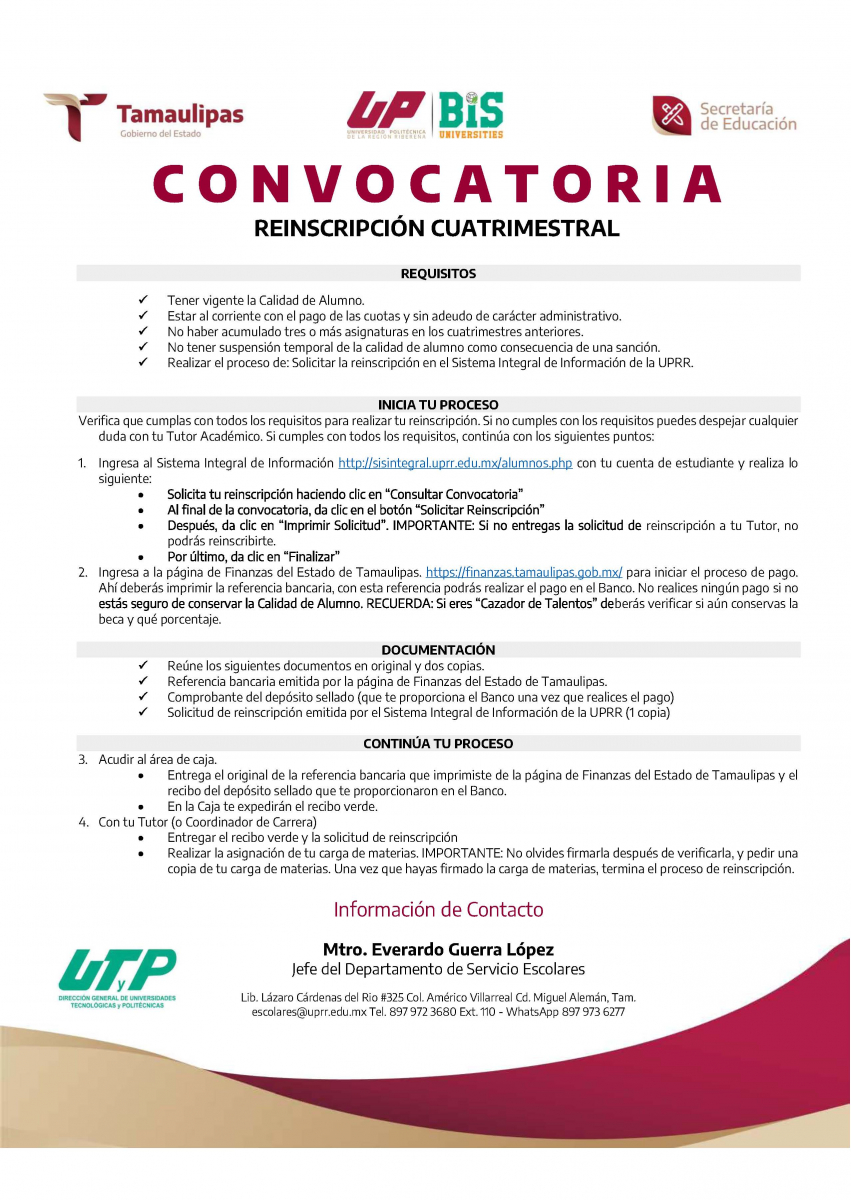Convocatoria de nuevo ingreso